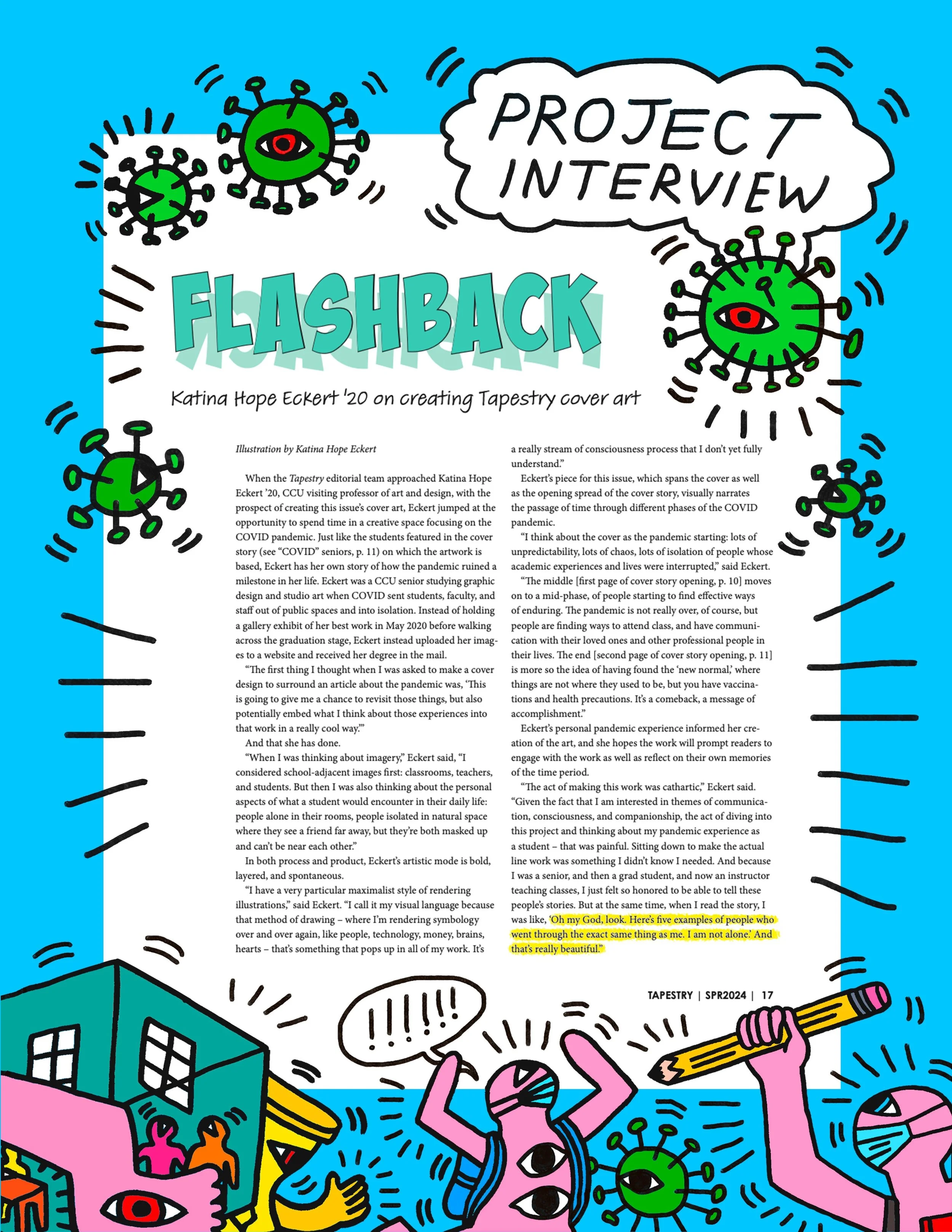 Editorial Illustration Project, Tapestry Magazine (S24) // main illustrated work, that spans across the publication’s cover and select spreads (alongside portraits I crafted, too).